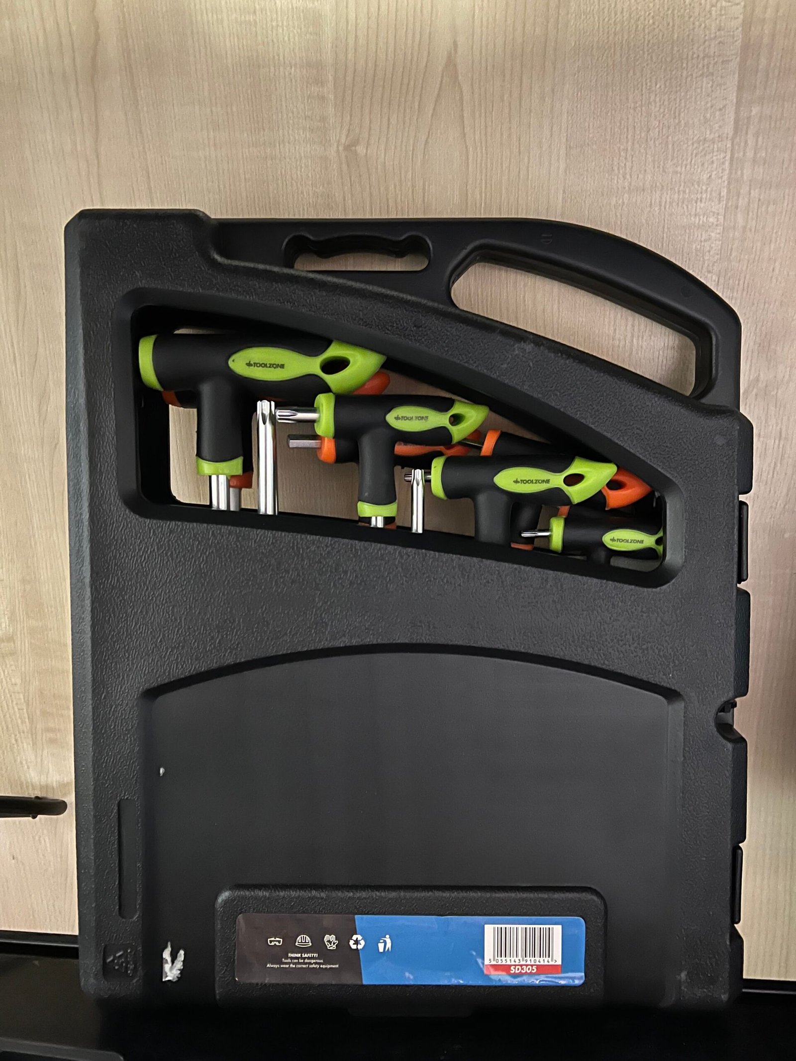 These hex wrenches are made from high quality Chrome vanadium steel material for long life. The metric 8 Piece T-Handle Long Arm Ball End Hex Key Wrench, 8-PieceT-Handle Long Arm Star Key Wrench With a special hexagonal ball head. The P-handles are made from a durable nylon material and are ergonomically-designed for comfortable use.