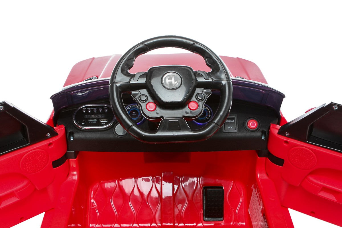 This battery powered, ride on electric car can be driven by the normal in-car controls by using the steering wheel and foot pedal. The parental control is optional to use and can operate the car in forwards and reverse gears, and also steer left and right.