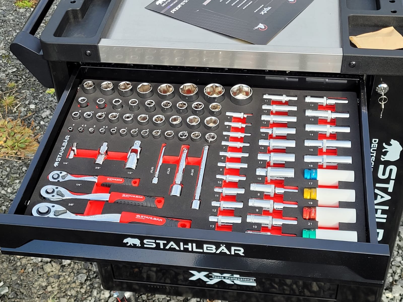 Manarola 12 Drawer Toolchest With Tools With Stainless Steel Work Top