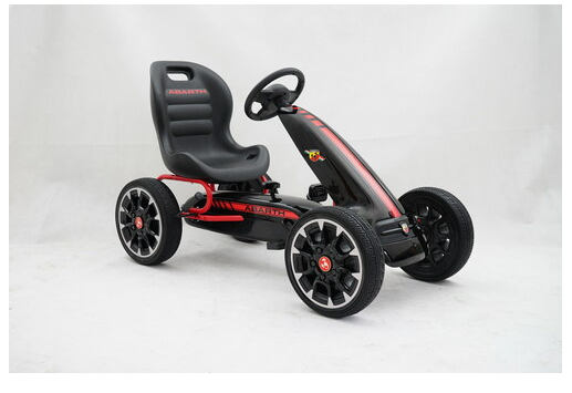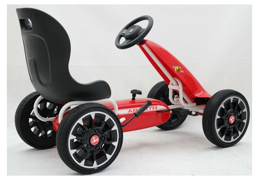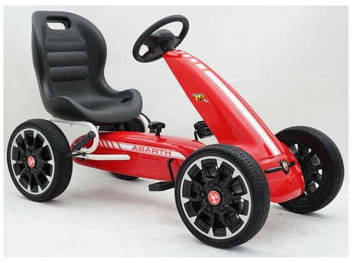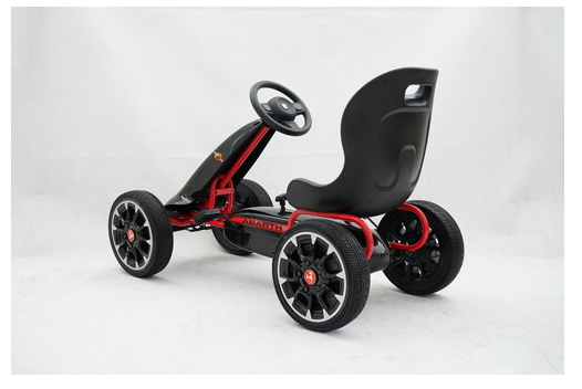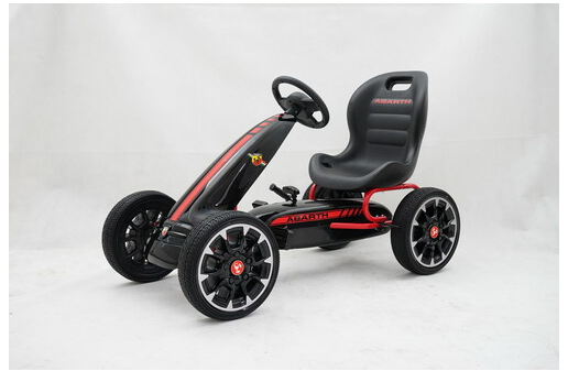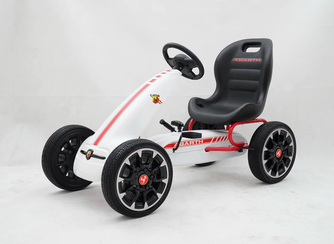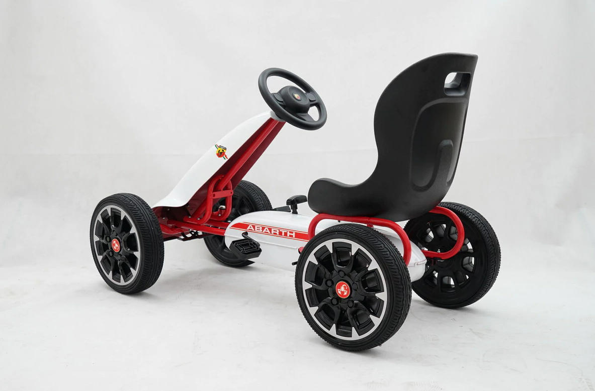 Complete with freewheel our Abarth pedal go kart can switch to freewheel mode so the pedals don’t move while the wheels are moving or going down hills. The robust metal frame comes with a sylish front spoiler and all 4 wheels are made of EVA rubber for a smoother ride.