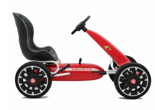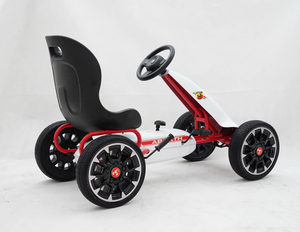 The amazing new licensed Abarth pedal go kart is a real show piece. Official badges and decals turn this go kart into a unique Abarth licensed go kart with plenty of features to enoy. The Large black bucket seat has 3 adjustable positions making it perfect for kids of different height from the ages of 3-8 years. A sporty steering wheel with official Abarth logo makes the go kart easy to handle and turn while the nearby hand brake makes it easy to stop if needed.