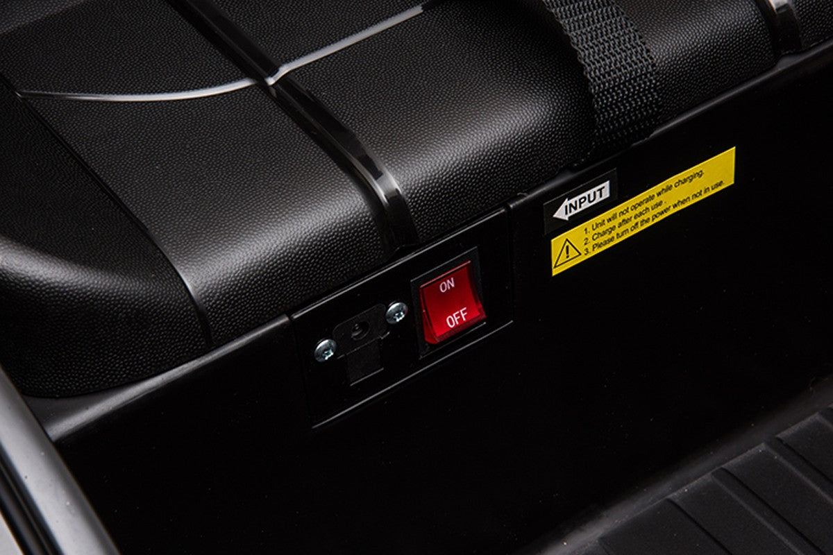 • 2.4G Bluetooth Parental remote control – The car can be used with the in-car controls, using the pedal, forwards/reverse gear-lever and steering wheel, or can optionally be used remotely with the parental control. The parental radio remote can operate from up to around 20m away and controls forwards/reverse and moves the steering wheel left and right. The remote is a 2.4G Bluetooth type, so will not be subject to any interference.