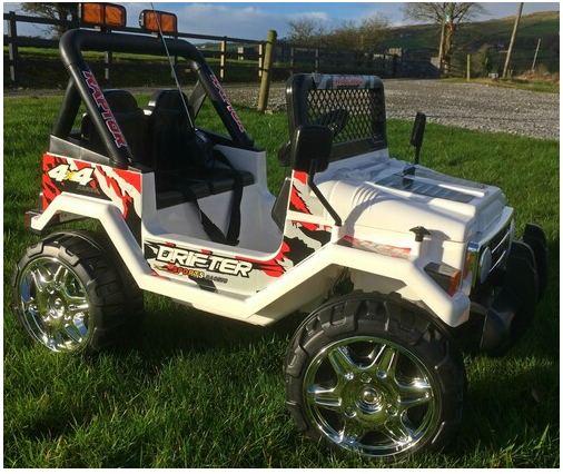 If you are looking for a fantastic two seater, 4×4 style electric ride on jeep with powerful twin motors and sturdy construction then, check out Drifter Raptor Powerful 12V Two Seater 4×4 Electric Ride on Jeep.