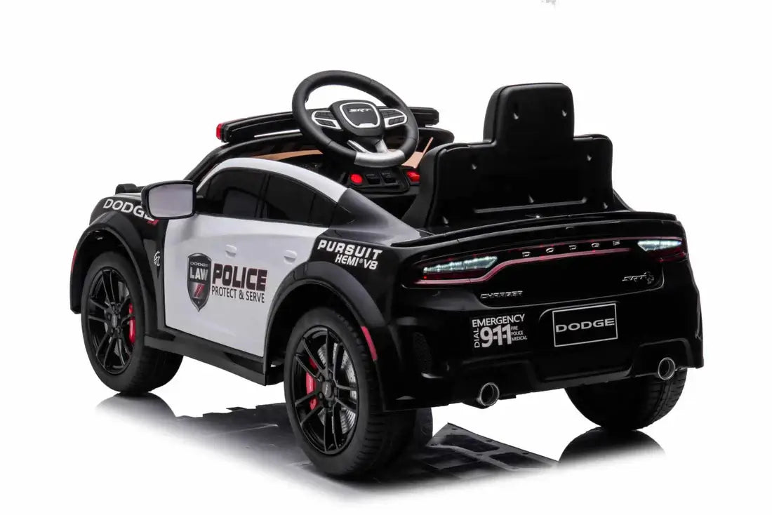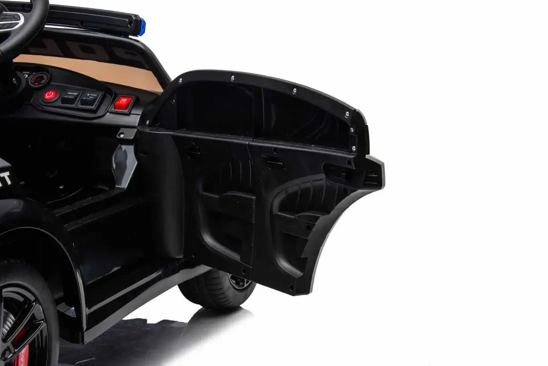 Kids’ 12V Black / White Electric Dodge Police Car – With Microphone, Parental Control & Safety Features