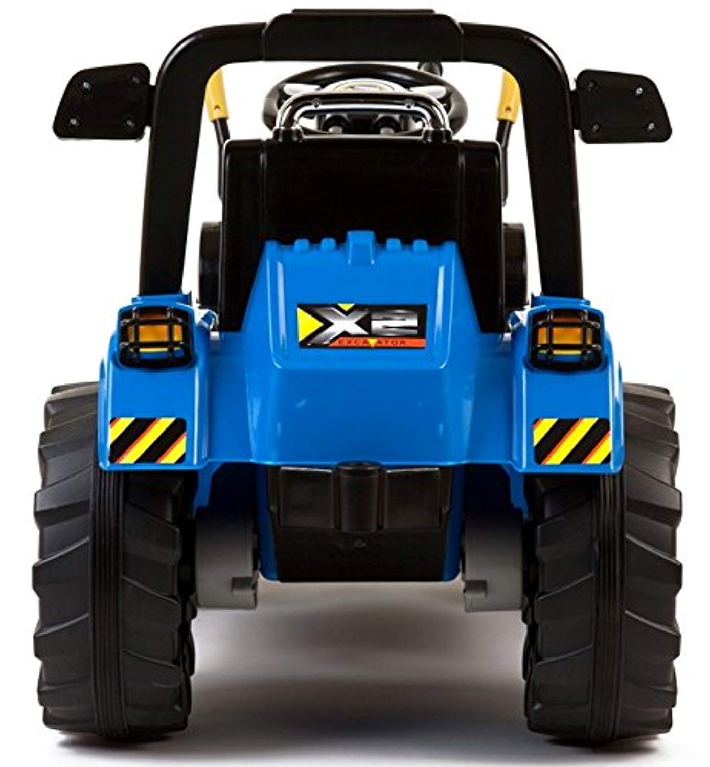 This Model with upgraded stronger twin motor technology and a new more advanced longer lasting battery, this is a great looking well made tractor with a working front loader bucket, optional parental remote control and other great features!