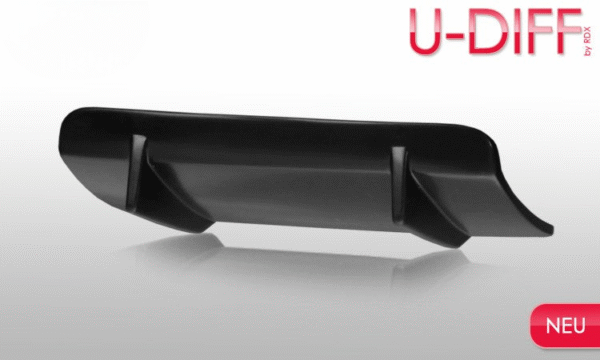 The U-Diff is a universally usable rear diffusor by RDX, Made in Germany! This stylish rear diffusor, also called rear addon, is made of high quality PUR plastic (polyurethane). This material is also used in original equipment and is extremely break-resistant. The U-Diff rear diffusor will be delivered unpainted in black and has a cleanly worked up, paint friendly surface.