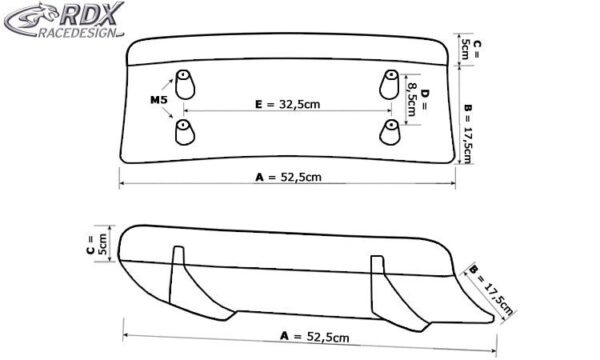The width of the U-diff rear diffusor is 52.5 cm. This corresponds approximately to the level of a normal-euro plate. All other relevant dimensions are shown on the dimensional drawing.