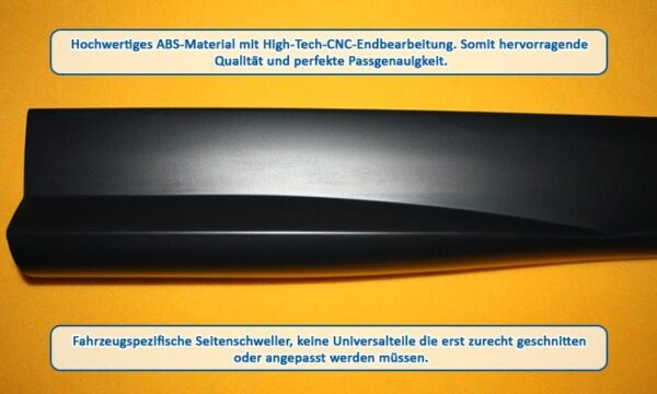 Made from ABS plastic, new, unpainted, including installation accessories and instruction, TÜV approval.