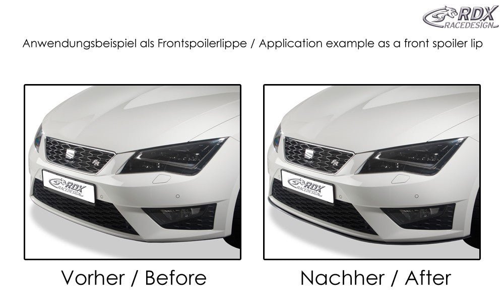 The universal spoiler lip SAFE `N STYLE is an innovative quality product by RDX. This stylish spoiler lip is made of highly flexible PP-EPDM plastic with rubber-/flexible foam properties. The universal spoiler lip SAFE `N STYLE is user-ready, finished in black, thus there are no additional costs for painting. The spoiler lip is not suitable for painting and foliation.