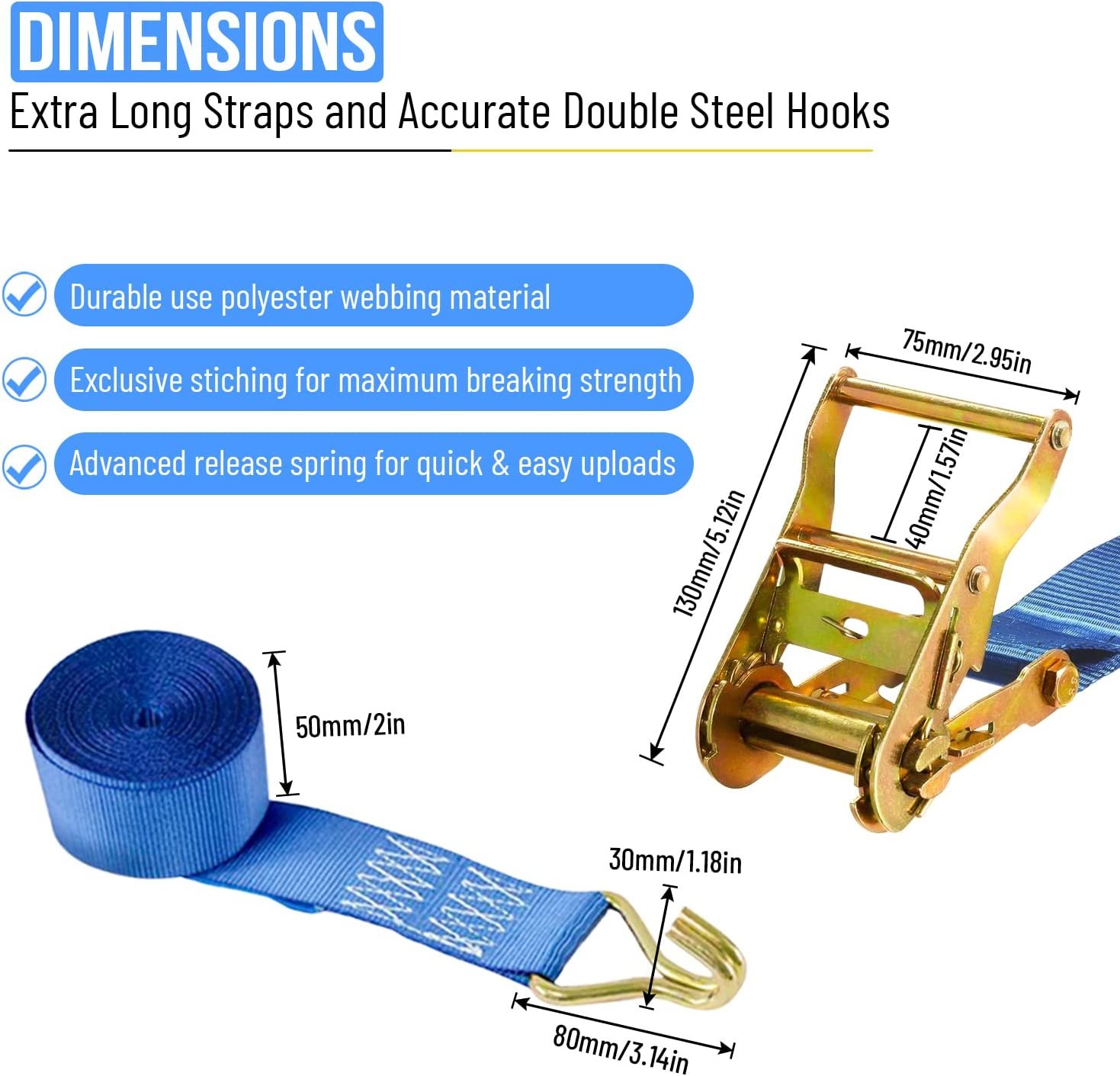 - BUILT TO LAST – These ratchet tie down straps are commonly used for securing loads on pallets within dry van trailers with logistic posts with E-Fittings.Also used for RALLY CARS and lots more. Our ratchet straps are all made with a very rigid polyester material. Our heavy duty ratchet straps work effectively by ratcheting down tightly over a load providing not only stability, but security as well