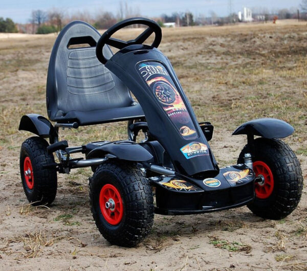SunKids – Large Rubber Wheel Black Go Kart (Black) – 4-9 Years