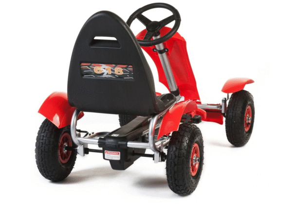 - Metal frame – Metal tubular chassis with metal drive axle means the kart is strong and robust.