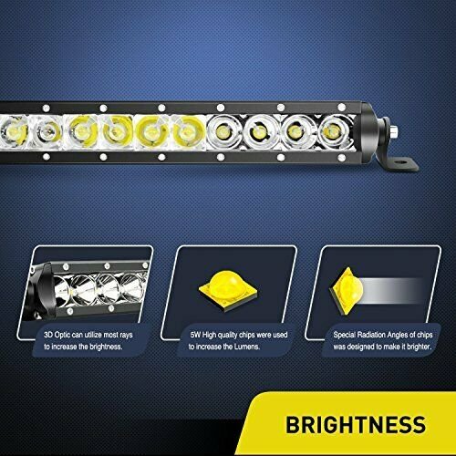 Our New Super Slim 21 Inch single Row design and smooth surface to reduces wind noise, increases optical light and solves the problem of light separation by Improved light utilisation, longer range, higher height