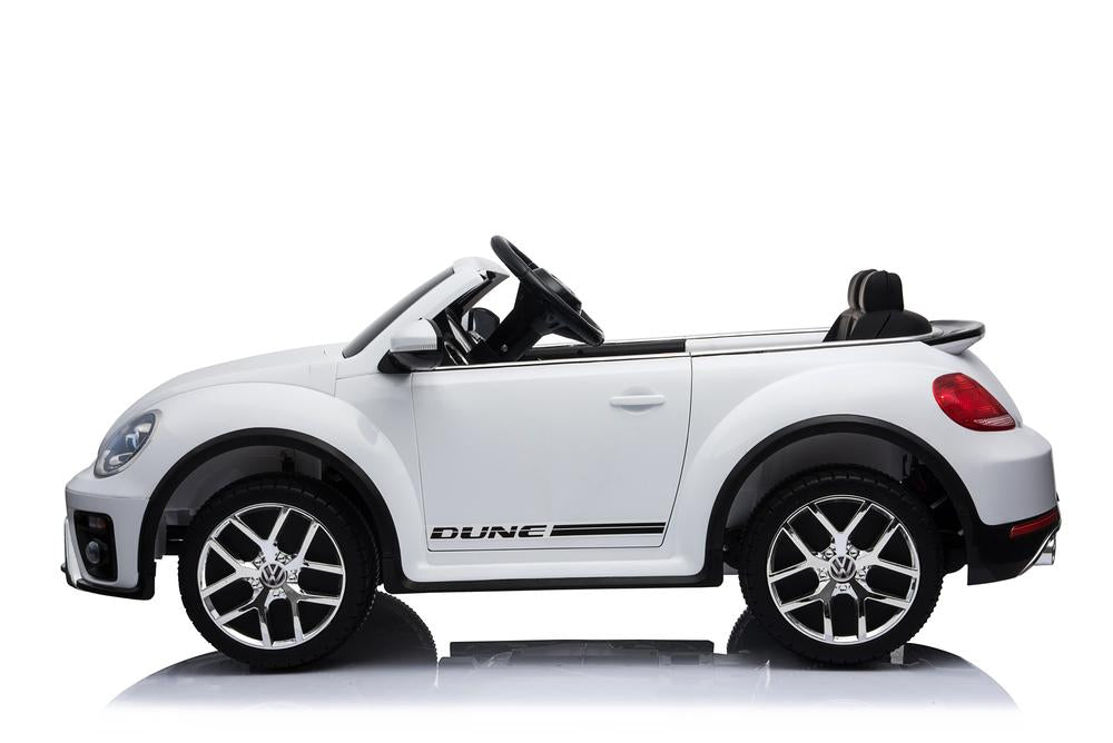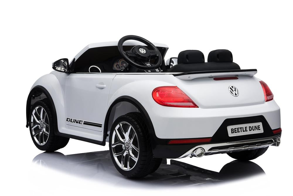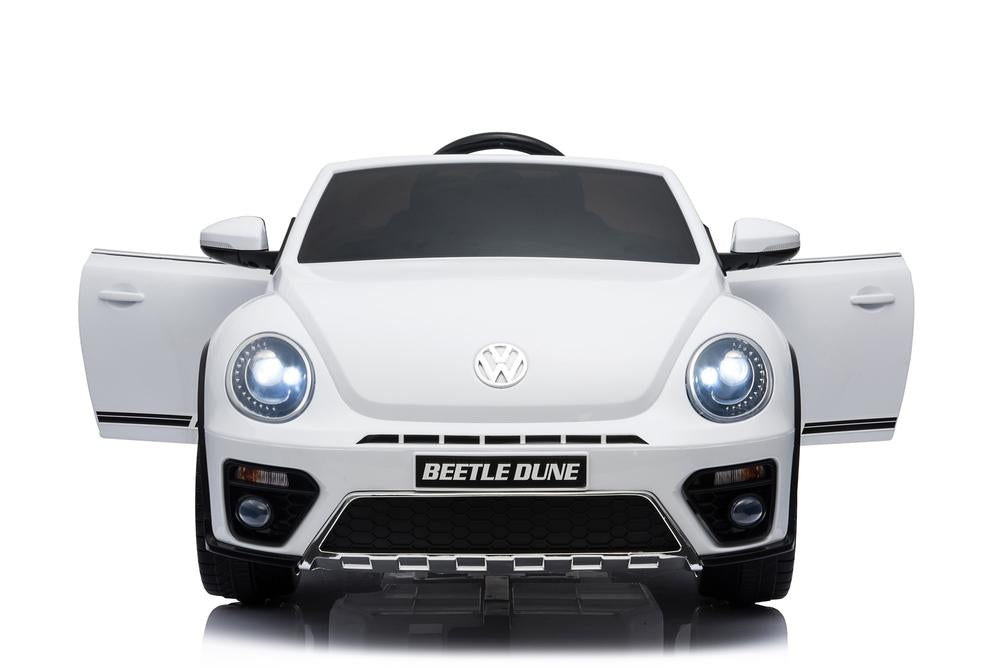 VW BEETLE licensed children ride on car, with 12V 4.5AH*1 battery and 2 motors, with Power indicator, High/low speeds, music, light, Volume adjustable, Four wheels with suspension and light, Double open doors, forward & backward with Parental controls included.