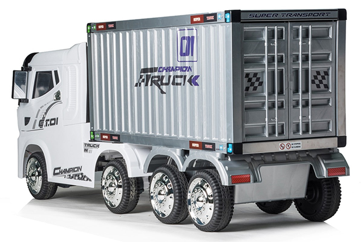 White R/C Four Motor Artic Truck & Trailer - 12V Kids' Electric Ride On